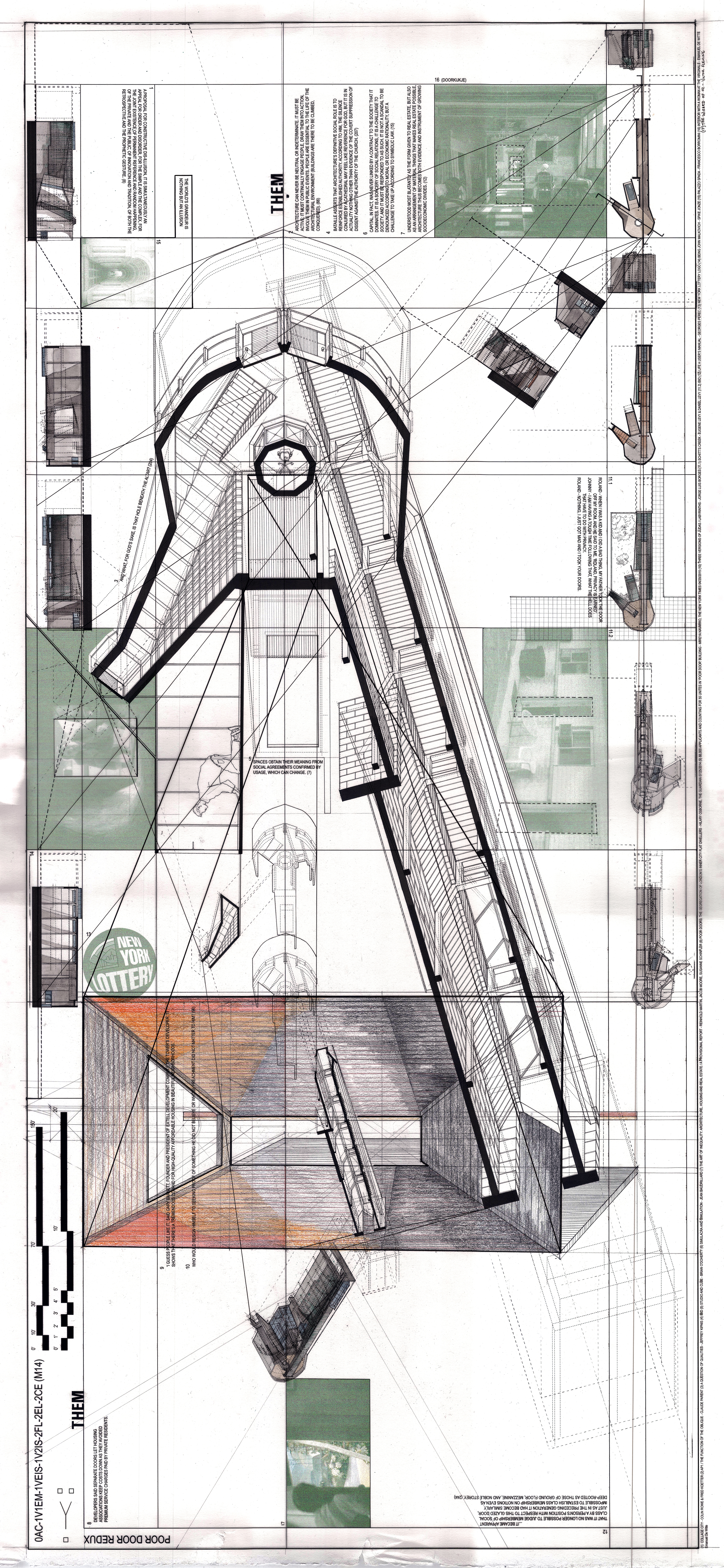 The Calendar House is a fictitious entry into the art-exhibiting scene. The architecture of exhibiting art in the city has stagnated into a repeating equation: White Walls + Exposed Structure + Art = Gallery. As the Calendar House attempts to segue from a historic structure to a contemporary experience without applying the equation, it is a Significance of space that takes the dominant role over a Function of space. Elevation, Section and Plan Oblique reflect and obfuscate the spatial relationships of material, circulation and time.